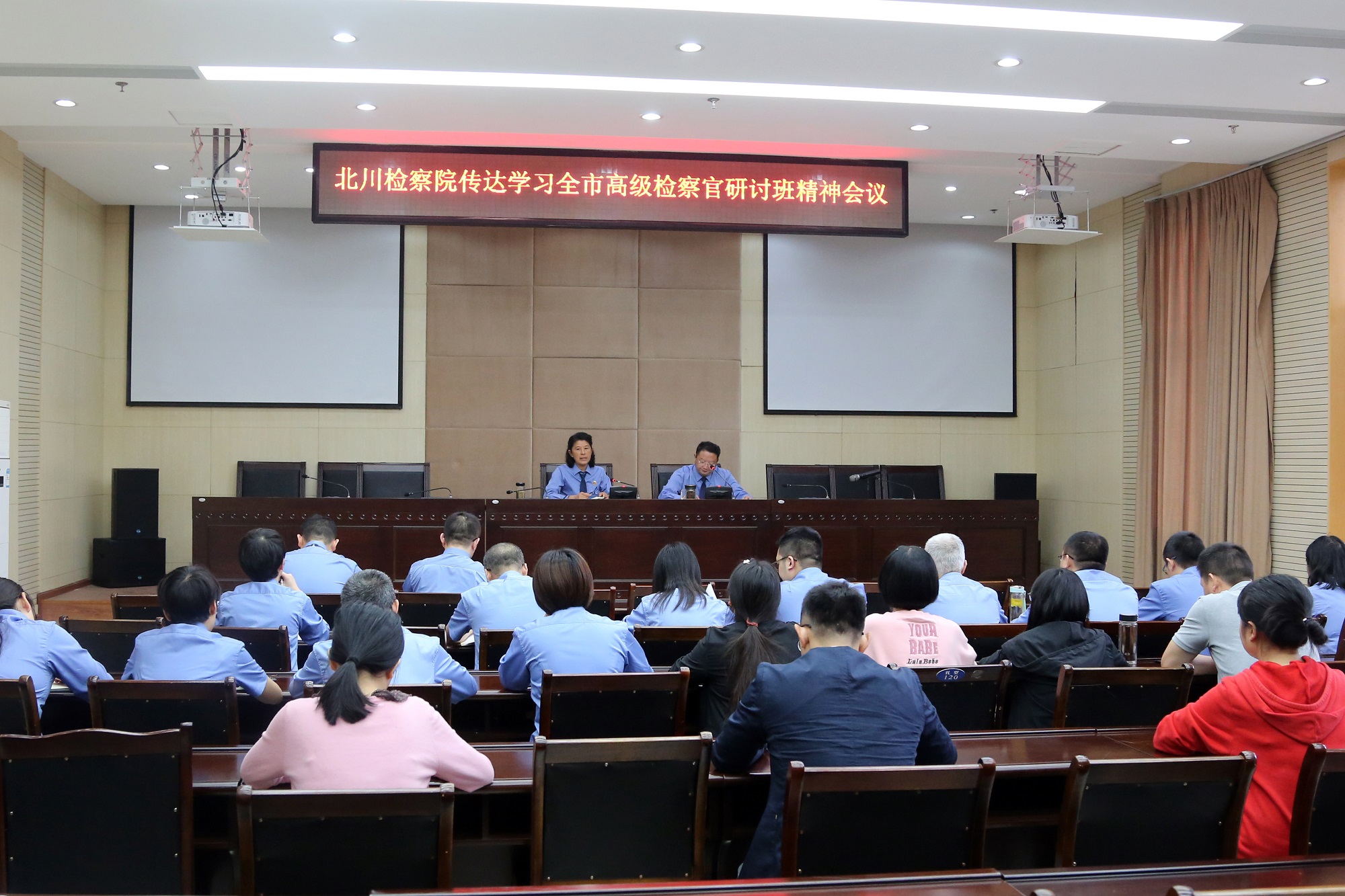 2020年9月24日,北川县检察院召开全院干警会议,传达贯彻全市高级检察官研讨班会议精神。